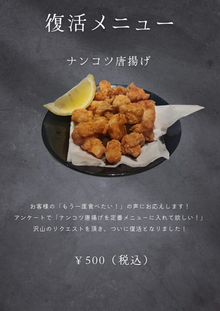 ✨ ナンコツ唐揚げがグランドメニューに正式復活しました! ✨